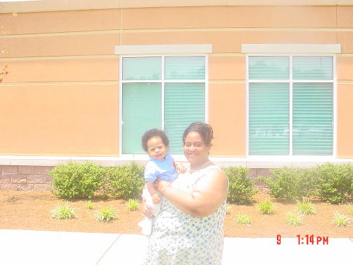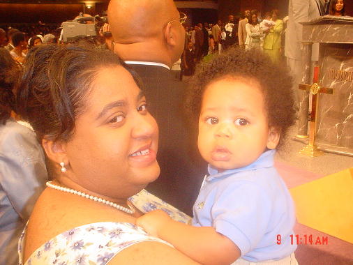 This is me and Mommy, We had to stand up front because my Mommy and Daddy are one of three sets of God parents for Christopher. He did better than me I only have two sets.
